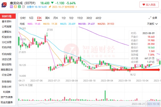 此消息一出,康龙化成在10月18日股价迅速下跌,在港股CRO概念跌幅居前的市场中,康龙化成盘中最大跌幅超6%,领跌CRO概念。