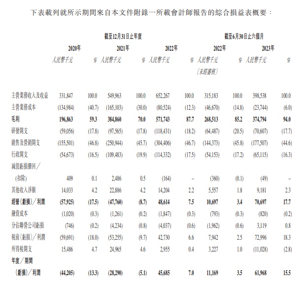 财务方面,于2020年度、2021年度、2022年度以及截至2022年、2023年6月30日止6个月,中企云链的主营业务收入及收益分别为约3.32亿元、5.50亿元、6.52亿元、3.15亿元、3.99亿元人民币;同期,实现年度/期间利润分别为-4420.5万元、-2829.0万元、4568.5万元、1116.9万元、6196.8万元人民币。