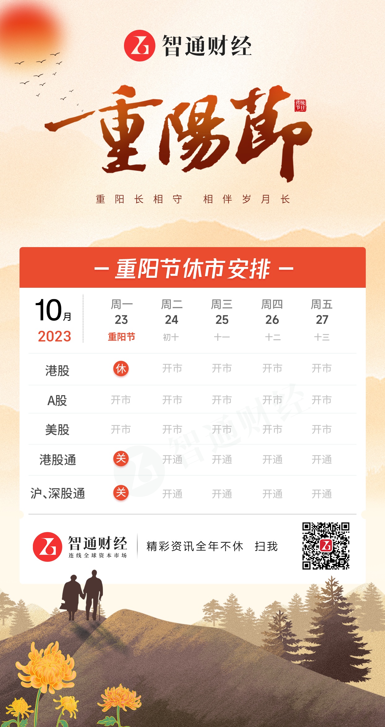 智通财经APP获悉,10月23日为香港重阳节假期,港股将于10月23日(周一)休市一天,10月24日(周二)恢复正常交易。