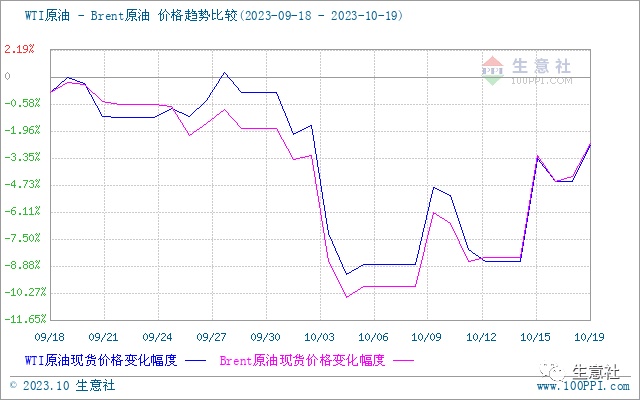 双节期间原油价格大幅走低,节后油价出现反弹,原油市场波动幅度较大,截止18日美国WTI原油期货主力合约结算价报87.27美元/桶,布伦特原油期货主力合约结算价报91.50元/桶。近期中东地缘局势问题成为影响原油市场的主要因素,目前来看只局限于两个国家,没有蔓延至周边国家,对于中东地区原油供应紧张的担忧支撑国际油价,短期来看国际油价走势偏强。但是宏观经济方面的压力及美联储加息尚未确定,北美用油旺季逐步结束,需求方面的利空相应压制原油市场,整体来看10月份原油市场走势下滑,受此影响国内成品油价格走势回落。