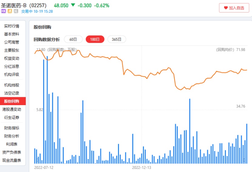 不过圣诺医药一直在进行股票回购以稳定股价。这也使得其股价在4月前始终稳定在50-60港元附近。据智通财经APP了解,圣诺医药的股票回购计划一直持续到今年7月28日,在股票回购当日,圣诺医药股价触及下半年高点59港元。