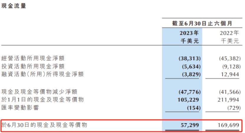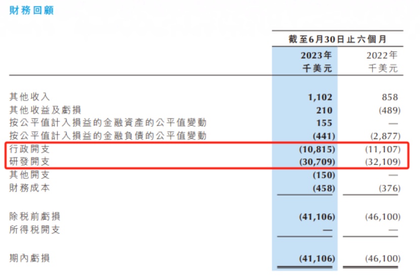 虽然随着管线研发的不断深入,但公司正在有意识地缩减开支。数据显示,公司研发费用从2022年上半年3210.9万美元降至至2023年同期的3070.9万美元,随之减少的还有行政费用。