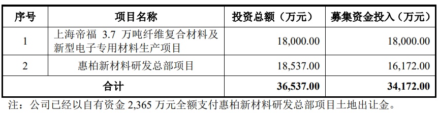 据了解,惠柏新材募集资金扣除发行费用后拟用于以下列项目: