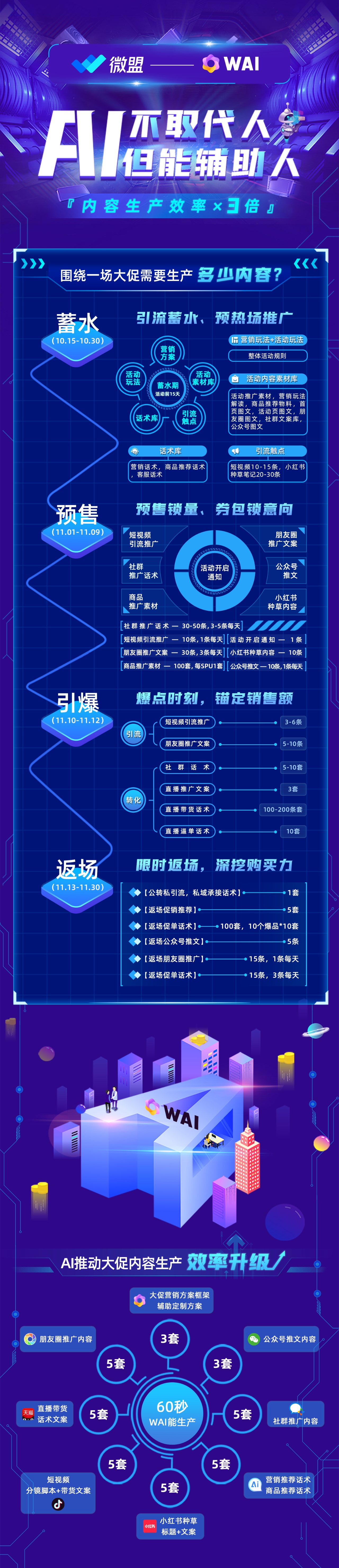在中国市场 ,2023年受到新技术潮流的推动,越来越多的SaaS企业正在积极应对 AI 带来企业需求变化的业务挑战。为帮助零售企业迎战即将到来的双11,近日国内新经济SaaS领军企业微盟集团利用旗下首款“SaaS+AI”的大模型应用型产品——微盟WAI推出"决战双11"计划,助力零售企业利用AI从预热引流到方案落地转化等阶段批量式生产营销推广内容,大幅提高双11运营效率。