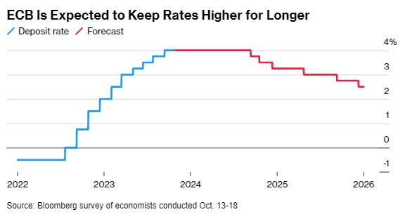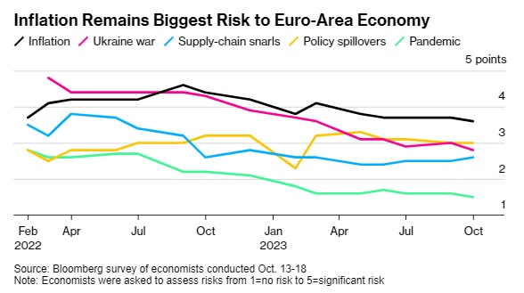 最近债券市场的溃败和以色列与哈马斯的冲突进一步强化了这一立场,这些冲突的连锁反应给欧元区20国本已恶化的经济前景构成了进一步的危险。