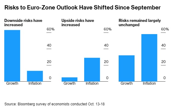 略高于60%的受访者表示,自9月欧洲央行会议以来,经济增长的下行风险有所增加,当时相关工作人员下调了该地区到2025年的预测。几乎同样比例的受访者表示,物价风险平衡基本保持不变。