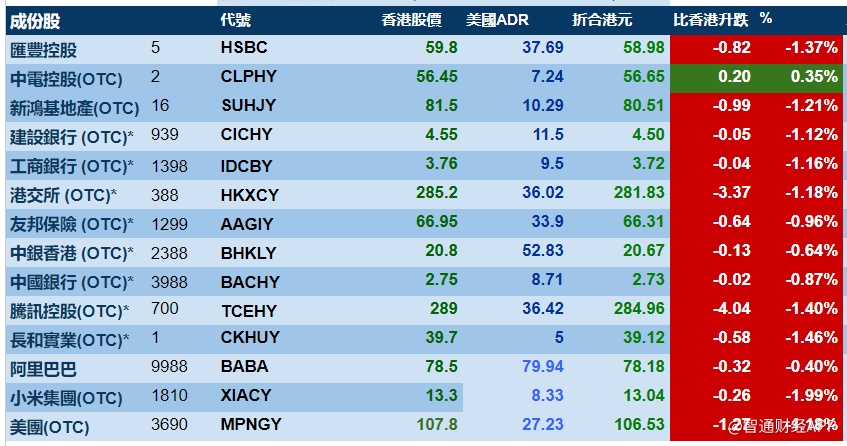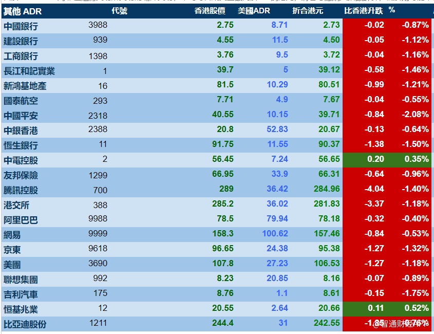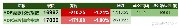 智通财经APP获悉,周五美股三大指数悉数下跌,港股ADR指数下跌,按比例计算,收报16962点,较香港收市跌210.25点或1.24%。