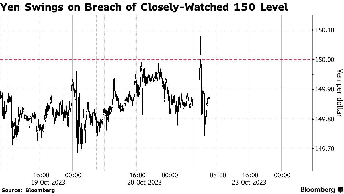 10月3日,美元兑日元汇率一度升至150.16,随后迅速回升至147.43,引发了人们的猜测,即日本政府是否已经开始支撑日元走势。但是,在第二天日本政府的高级官员坚持让投资者继续猜测,拒绝澄清他们是否进行了干预。
