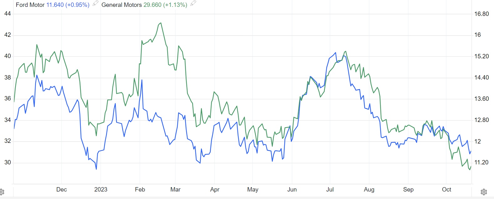 智通财经APP获悉,通用汽车(GM.US)和福特汽车(F.US)本周将公布第三季度业绩以及管理层关于未来业绩的指引,目前美国汽车行业大罢工浪潮和与美国汽车工人联合会(UAW)主导的合同谈判仍在进行中。在不少分析师看来,这是一个艰难的平衡,如果汽车制造商们的业绩乐观并超出华尔街预期,这可能会助长工会的主要论点,即在利润健康的情况下,这些公司可以负担得起更多的让步——可能会延长罢工和有争议的薪资谈判。