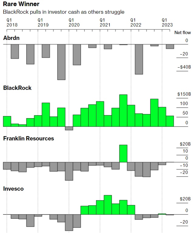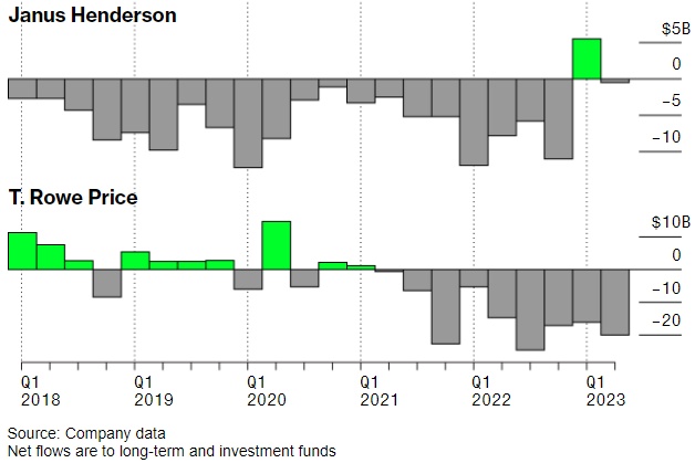这五家公司的股票都暗示了游戏的状态。除普信集团外,自2018年初以来,所有这些公司的市值都至少下跌了三分之一,而标准普尔500指数则上涨了约60%。除了Abrdn每六个月发布一次财报外,这些公司将在未来两周公布季度财报,从周二开始,景顺将公布季度财报。