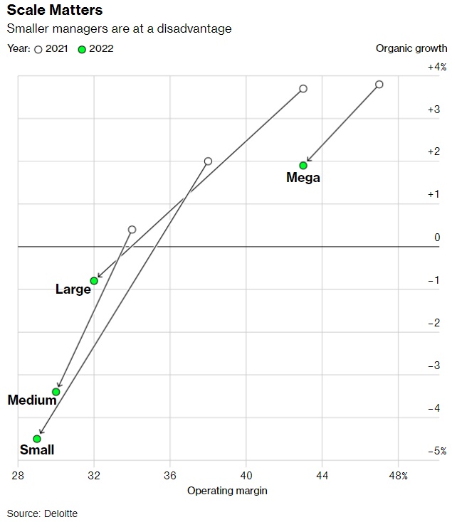 Alpha FMC副董事Evan Skalski表示,"中间参与者无法在这种情况下自然成长。" Alpha FMC为全球前20大资产管理公司提供咨询服务。“他们可以尝试控制成本,保持当前业务的运行,但他们必须接受低增长或零增长的故事。”