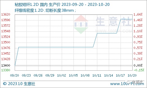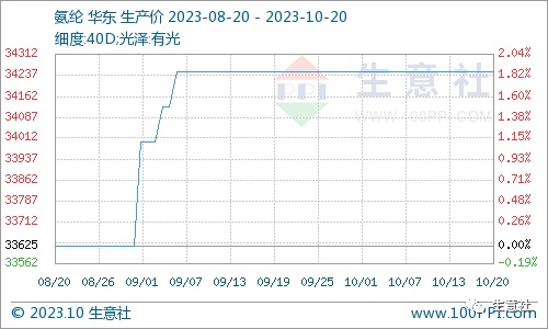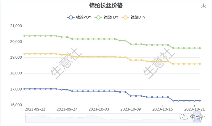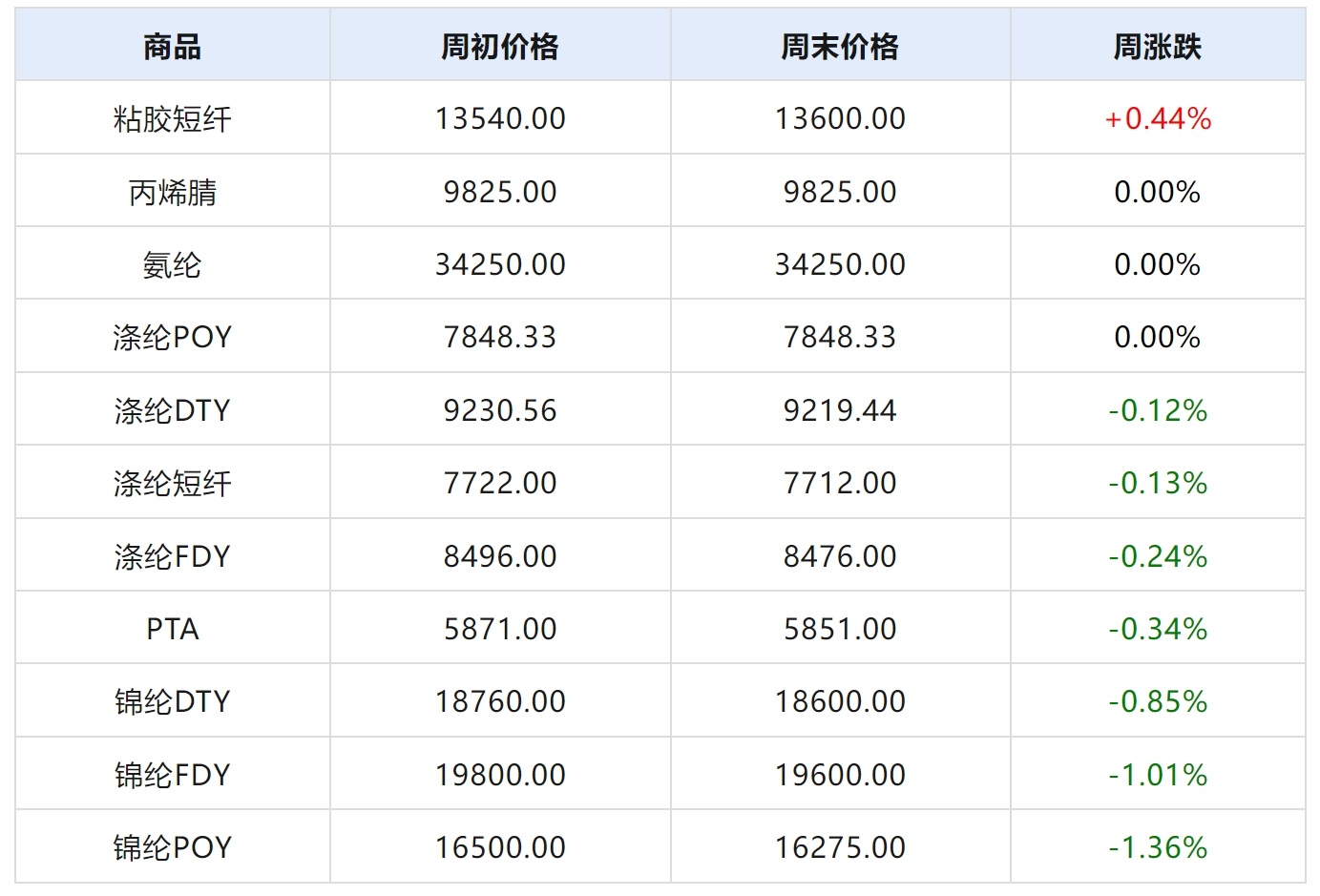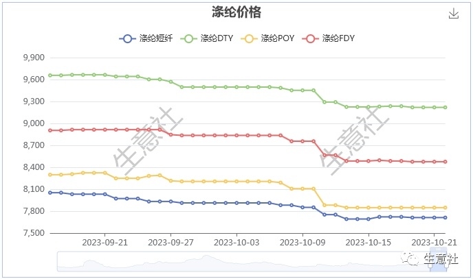 智通财经APP获悉,据生意社价格监测,2023年第42周(10.16-10.20)化纤价格涨跌榜中上涨的商品共1种,下跌的商品共7种。上涨的主要商品有:粘胶短纤(0.44%);下跌的主要商品有:锦纶POY(-1.36%)、锦纶FDY(-1.01%)、锦纶DTY(-0.85%)。