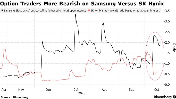 据了解,由于SK海力士与英伟达(NVDA.US)达成了优质高带宽存储芯片的供应协议,该公司今年大涨67%,力压对手三星24%的涨幅。从期权数据来看,这一差距可能会进一步扩大。期权数据显示,三星的看跌/看涨比率是SK海力士的两倍多。