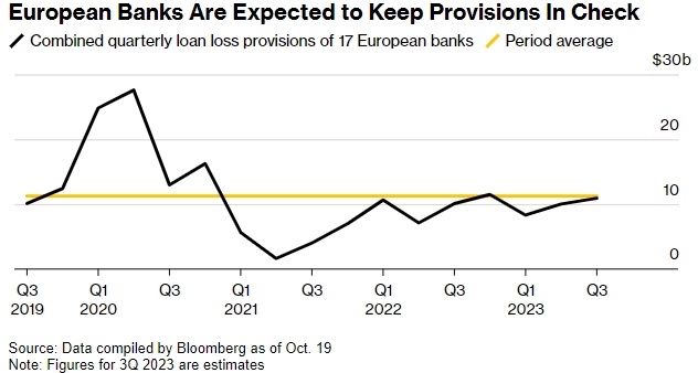 此外,巴以冲突和俄乌冲突、以及今年意大利、瑞典和荷兰征收暴利税的努力也受到了关注。坏账准备金,尤其是支持商业房地产的贷款准备金,也会引起市场的兴趣。