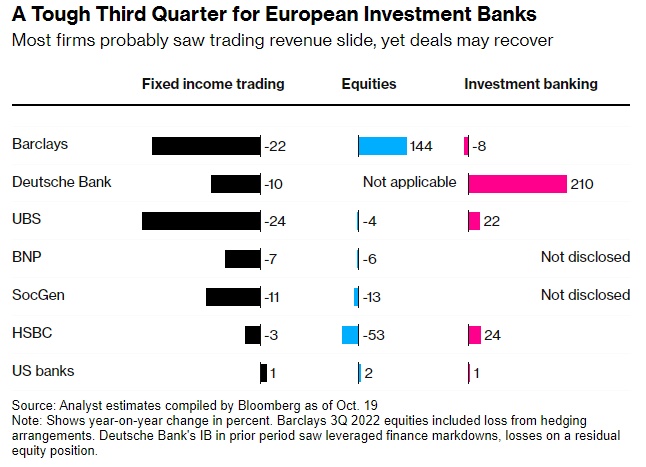 另一方面,固定收益交易员可能会从波动加剧中获得收入增长,类似于俄乌冲突后出现的波动。预计第三季度欧洲业务的营收将出现下滑,表现逊于美国同行。