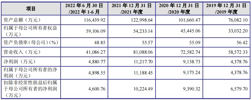财务方面,于2019年度、2020年度、2021年度及2022年1-6月,长江都市实现营业收入分别约为5.86亿元、7.26亿元、8.11亿元、4.11亿元人民币;同期,净利润分别约为4378.76万元、9138.73万元、约1.12亿元、4880.77万元人民币。