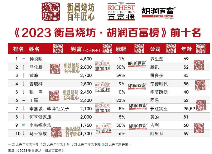 榜单上,农夫山泉69岁的钟睒睒财富基本与去年持平,以4,500亿元第三次成为中国首富。