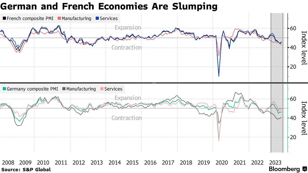 Cyrus de la Rubia补充称,数据表明,德国经济将再次陷入衰退,德国2023年经济也将陷入萎缩。他表示:”德国在最后一个季度开始时表现不佳。制造业产出继续急剧下降,上个月增长的服务业活动再次表现不佳。”