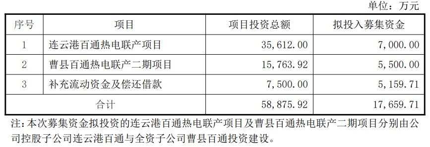 百通能源目前已在江苏省宿迁市的泗阳经济开发区、江苏省连云港市的赣榆柘汪临港产业区、江西省抚州市的金溪工业园区、山东省菏泽市的曹县经济开发区以及山东省临沂市的蒙阴县孟良崮工业园等多个工业园区设立集中供热项目公司。