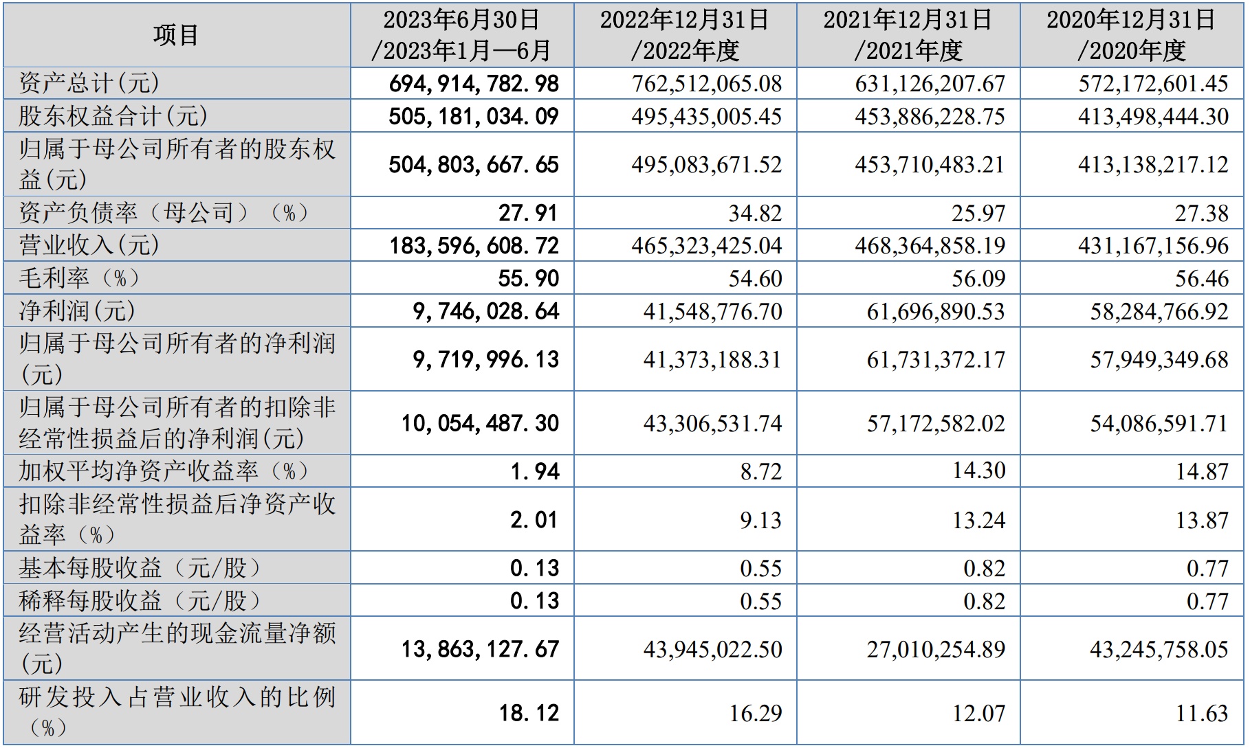 财务方面,于2020年度、2021年度、2022年度及2023年1-6月,立方控股实现营业收入分别约为4.31亿元、4.68亿元、4.65亿元及1.84亿元人民币。同期,归属于母公司所有者的净利润分别约为5794.93万元、6173.14万元、4137.31万元及9720万元人民币。
