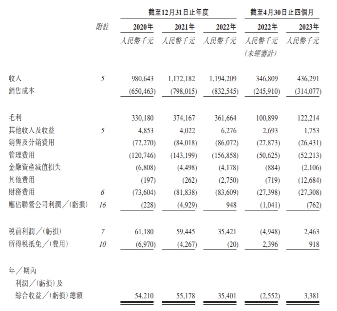 财务方面,于2020年、2021年、2022年以及截至2023年4月30日止四个月,佛朗斯实现收入分别约为人民币9.81亿元、11.72亿元、11.94亿元以及4.36亿元,同期净利润分别约为人民币5421万元、5517.8万元、3540.1万元以及338.1万元。