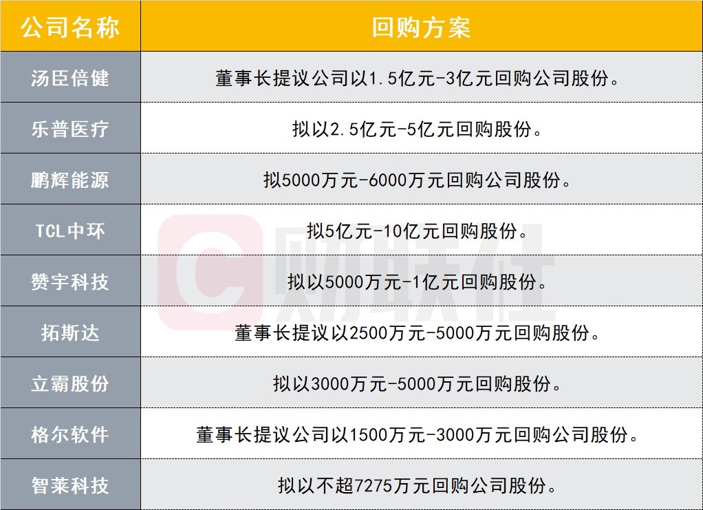 2、A股再掀回购小高潮!近10家公司集体出手,最高回购金额达10亿