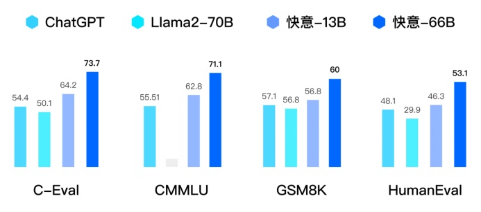 今年下半年以来,快手加快AIGC的布局。8月,快手宣布内测自研大语言模型“快意”(KwaiYii),打造“全模态大模型AIGC解决方案”。基于自研的基座大模型,为用户提供包括文本生成、图像生成、3D素材生成、音频生成、视频生成等在内的多种技术能力。其中,KwaiYii-13B在多个 Benchmark 上都处于领先水平,证明了其在自然语言处理任务中的出色性能。