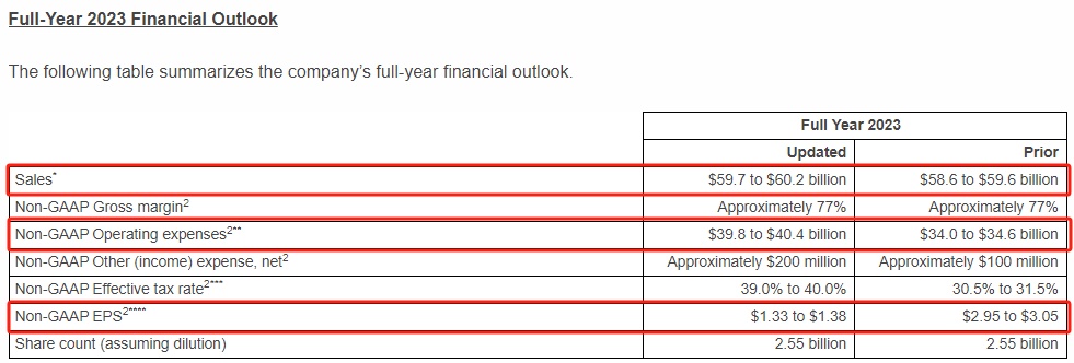 展望未来,默沙东上调全年销售指引、大幅下调盈利指引。该公司预计2023年销售额将位于597亿美元至602亿美元区间(此前指引为586亿美元至596亿美元);预计2023年非GAAP每股收益将位于1.33美元至1.38美元区间(此前指引为2.95美元至3.05美元),低于预期。