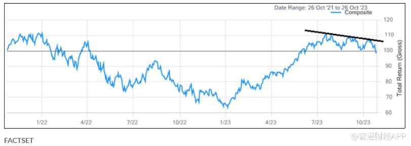 根据FactSet数据,该指数在8月31日再次测试了这一水平,最高攀升至108.17点。最后一次测试是在10月11日,当时指数触及107.41点。