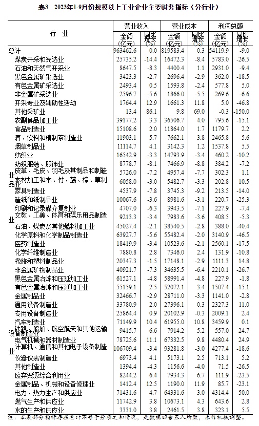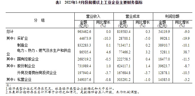 2023年1—9月份全国规模以上工业企业利润下降9.0%