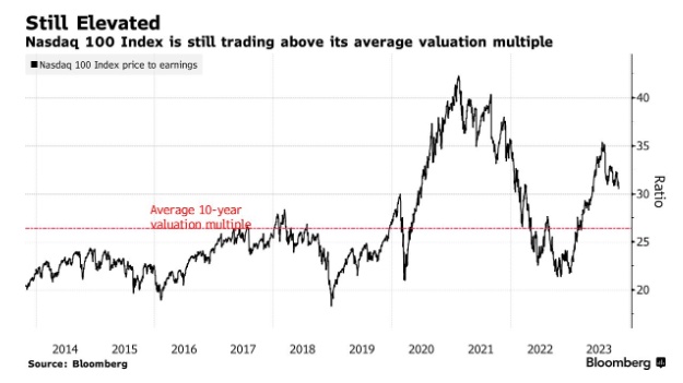 Gordon表示,即使纳指的市盈率在三个月内从35倍降至略低于30倍,该指数仍有较大的空间跌至历史平均水平。造成这种情况的主要催化剂可能是市盈率压缩和对预期收益的下调。