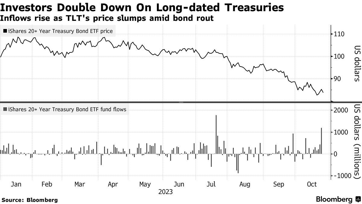 尽管债券市场痛苦重重,甚至一些交易员押注未来还会有更多痛苦,但一旦美国国债收益率达到5%或更高,这些债券对那些长期国债投资者的吸引力就会大得多(美债收益率和美债价格的变化是反向关系)。