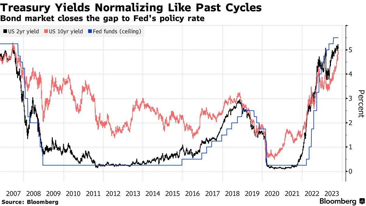 从另一面来看,接近5%的10年期美债固定收益率可以说为投资者提供了自2007年以来最高规模的债券收益来源,帮助债券和股票等高风险高回报资产相竞争。它们还使投资组合在风险资产市场持续痛苦的时期更具有弹性。