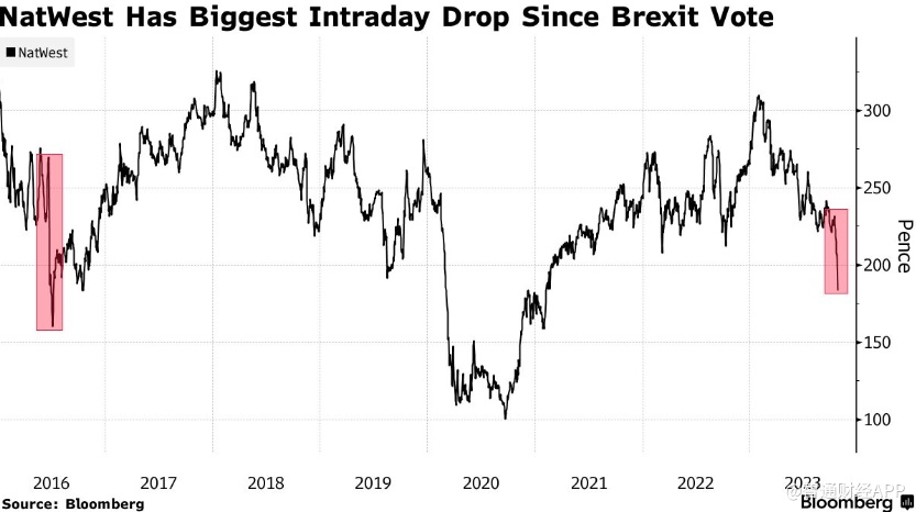 截至发稿,NatWest股价下跌9.23%,跌幅一度达18.2%。在金融危机期间接受纾困后,英国政府仍是NatWest的最大股东。