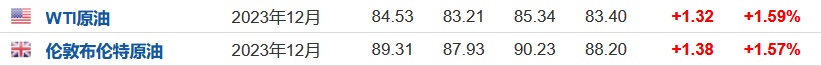 3.截至发稿,WTI原油涨1.59%,报84.53美元/桶。布伦特原油涨1.57%,报89.31美元/桶。