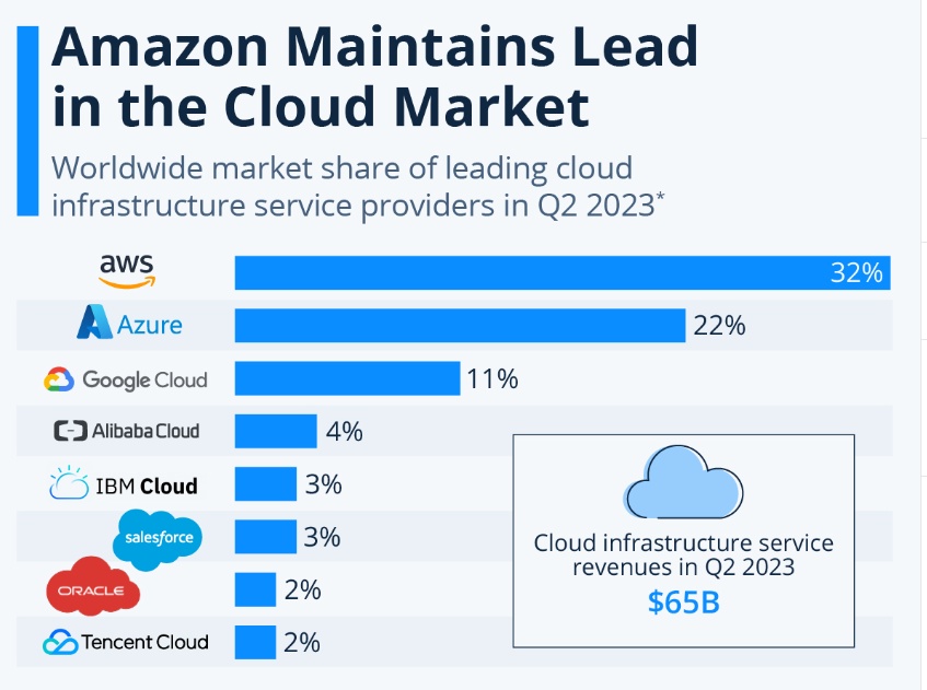 这些交易都将使这两大科技巨头与掌握OpenAI多数股权的微软(MSFT.US)在云计算服务,以及生成式AI领域展开更为激烈的全面竞争。这三大科技巨头的最新财报显示,微软Azure云服务扩张之势不可阻挡,谷歌云已经落后于Azure数个身位,而占据全球云服务领域领导者AWS所占据的份额逐渐被Azure蚕食。