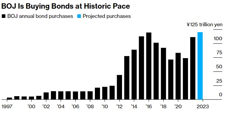 但这也会削弱日本央行刺激政策的力度,目前日本央行在经历了10多年的大规模资产购买之后,似乎正在接近稳定的通胀目标。这也可能向伺机而动的市场投机者发出担忧的信号。例如,2021年澳洲联储收益率目标的崩溃,显示出给市场参与者一种央行正在逃跑的印象的风险。彭博经济学家Taro Kimura称;“我们预计日本央行将顶住压力,加大对日本国债的购买力度,评定市场走势不符合经济状况或通胀预期。”