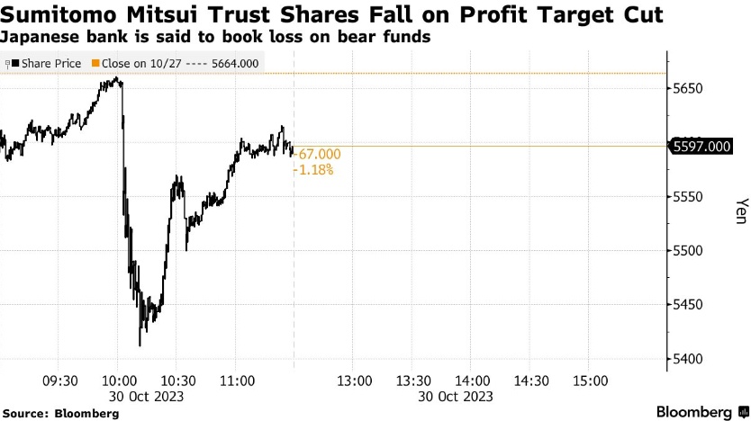 据了解,三井住友信托公布,在4月至6月这个季度,空头基金亏损315亿日元,使其净利润较上年同期下降43%,至367亿日元。该公司将于11月中旬公布上半财年财务业绩。