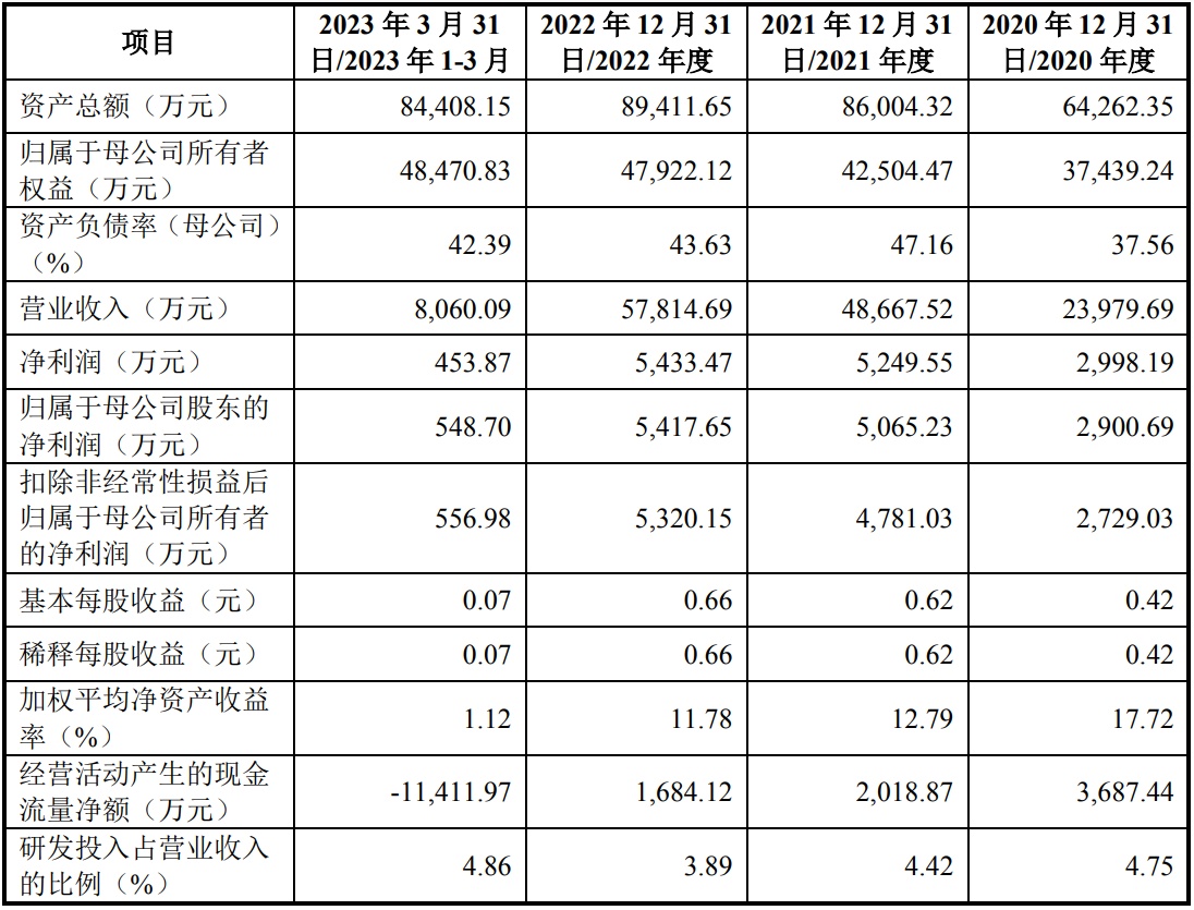 财务方面,于2020年度、2021年度、2022年度及2023年1-3月,三清互联实现营业收入分别为2.40亿元、4.87亿元、5.78亿元及8060.09万元,其中公司实现净利润分别为2998.19万元、5249.55万元、5433.47万元及453.87万元。