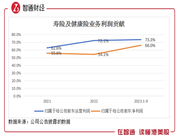 该公司强大的医疗健康生态圈系统,对金融主业的赋能效果显著,截至2023年9月,有近64%的客户同时使用了医疗健康生态圈提供的服务,客均合同数约3.42个及客均AUM约5.61万元,分别为不使用医疗健康生态圈服务的个人客户的1.6倍及3.4倍。在第三季度,其在北京探索试点“保险+医疗”模式,未来大概率也将在其他城市试行。