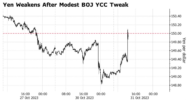 这次日本央行的政策调整更加清晰,但很难令人信服。他们将YCC的上限变为“参考”利率,这增加了灵活性。总的来说,这一信息比预期的更为鸽派。因此,除非财务省采取行动,否则日元都将处于压力之下。因此决议公布后,日经225指数一度快速走高涨至0.7%,日本东证指数涨0.7%。美元兑日元短线拉涨,再次涨破150关口;10年期美债收益率短线下行4bp。