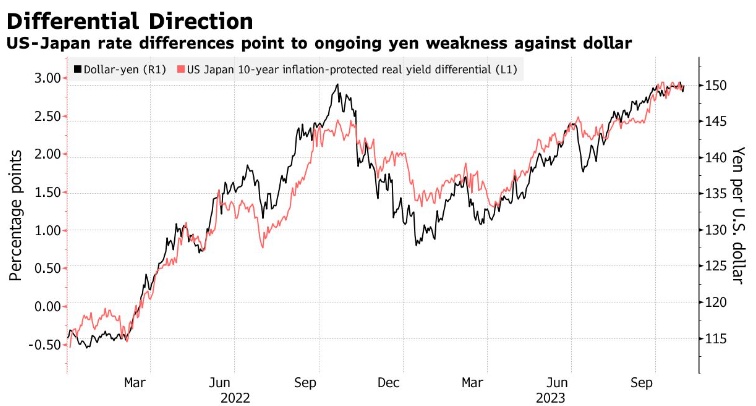 日元一直是今年表现最差的10国集团货币,在日本央行宽松政策的打压下,日元兑美元在2022年和2021年下跌了10%以上。疲软的日元推高了进口价格,从而推高了自2022年4月以来一直高于日本央行2%目标的通胀率,加大了央行采取行动的压力。面对更高生活成本的选民也给政府施加了压力。