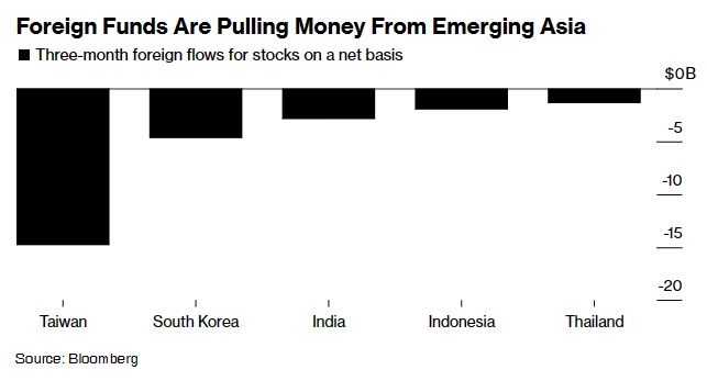 智通财经APP获悉,由于对美元走强、借贷成本上升和地缘政治紧张局势的担忧,市场整体风险偏好降温,全球基金纷纷抛售除中国以外的新兴市场的股票。媒体汇编的最新数据显示,海外投资者在10月份抛售了近110亿美元的新兴市场股票,过去三个月的抛售规模累计达到约270亿美元。这是自去年6月以来持续时间最长的一次抛售。