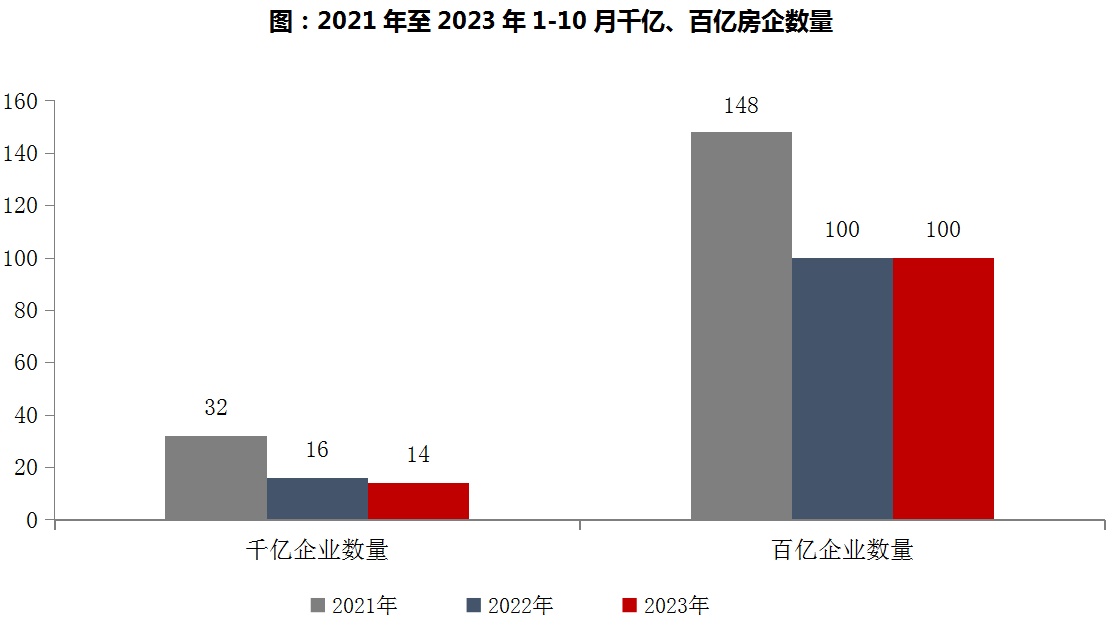 图:2021年至2023年1-10月千亿、百亿房企数量