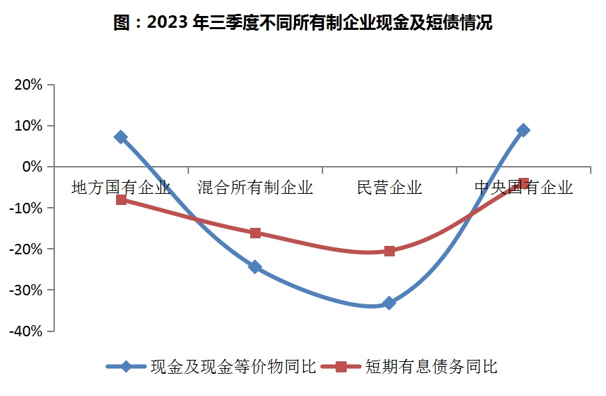 图:2023年三季度不同所有制企业现金及短债情况