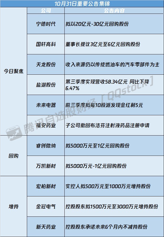 1、宁德时代:拟以20亿元-30亿元回购股份
