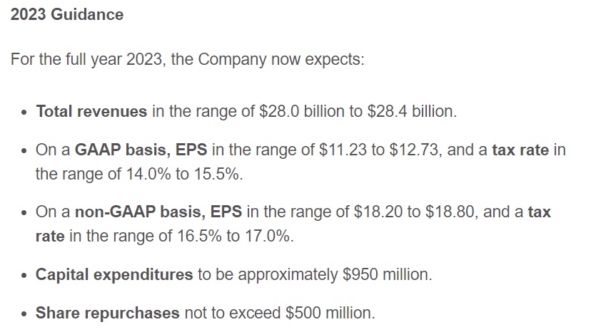 本月早些时候,安进公司完成了对罕见病制药公司Horizon Therapeutics的收购,并且在最新财报中上调了该公司的全年营收预期。安进周二在一份最新声明中表示,2023年的整体营收将达到280亿至284亿美元,高于该公司此前预计的274亿美元,以及275亿美元的分析师普遍预期。该公司预计Non-GAAP 准则下调整后的每股收益将在18.20美元至18.80美元之间,在该区间的下限增加了40美分,其区间中值好于分析师普遍预期。