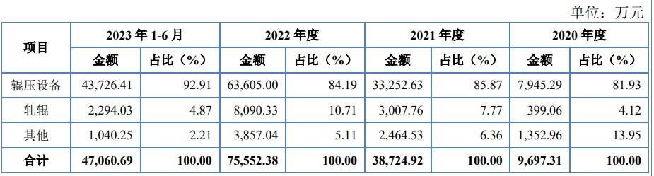 招股书披露,纳科诺尔是行业领先的辊压机制造商,主要从事各类新能源电池的极片辊压机及其他用途(如高分子材料、碳纤维、粉末冶金、贵金属压延等)辊压机的研发、生产与销售。