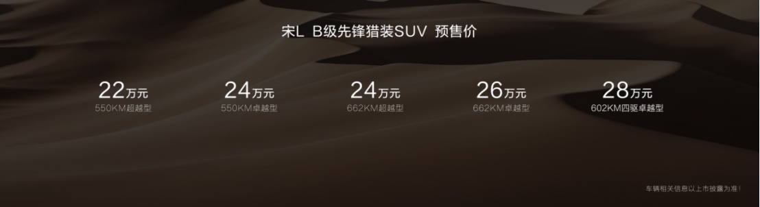 10月31日,今年最值得期待的新车宋L正式开启预售,发布了5个款型,包括4款后驱版本以及1款四驱版本,预售价格22-28万元,同时带来了五重预售权益。