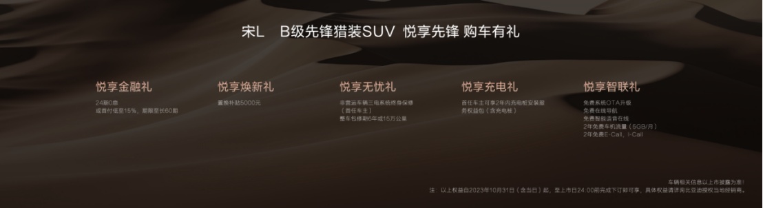 宋L以先锋诠释感官体验,以科技书写豪华新篇,以时尚彰显独特个性,致力成为B级SUV市场先锋,为主流家庭用户带来多元化、个性化、智能化的用车新体验。